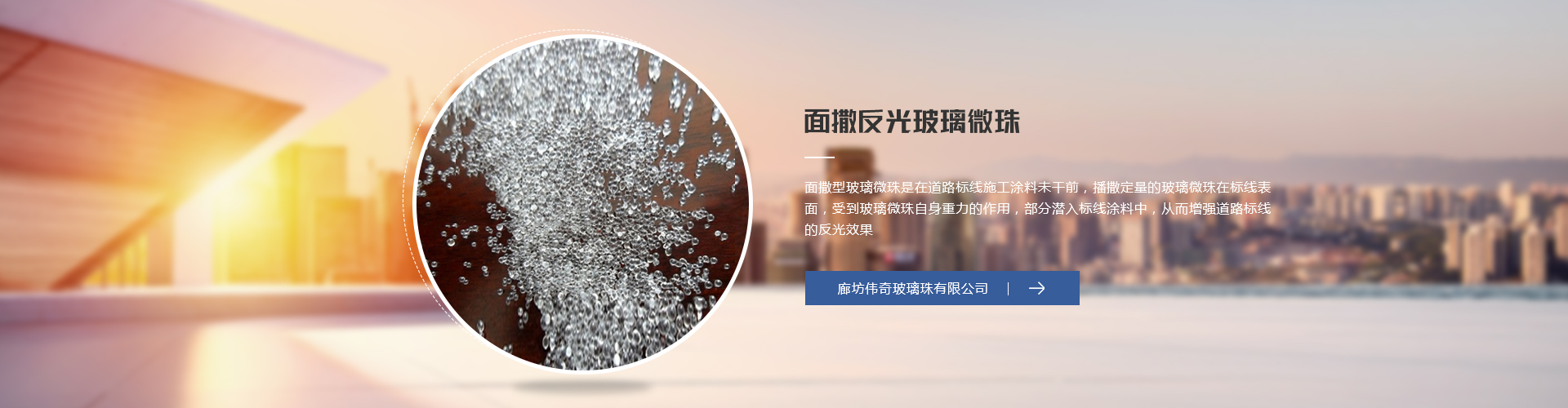 廊坊偉奇玻璃珠有限公司是生產經營玻璃珠系列產品的專業企業。 公司成立于1996年,坐落于具有“玻璃珠基地”美譽的河北省廊坊市永清縣,有5條流水線,年生產玻璃珠30000噸、玻璃砂20000噸。公司地理位置便利,距北京大興國際機場30公里,天津新港110公里。公司嚴格按照ISO9001質量管理體系和ISO14001環境管理體系進行管理和生產以確保產品質量和在生產過程中實現對環境的保護。主要生產道路標線反光玻璃微珠、鍍膜玻璃微珠、雨夜玻璃珠和工業機械噴丸、清理、拋光用玻璃微珠及工藝品裝飾用彩色玻璃微珠系列產品,還生產各種規格玻璃砂